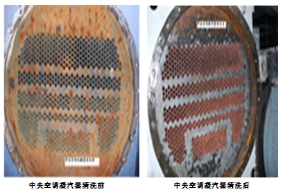 某單位中央空調凝汽器清洗前和用藥劑清洗后