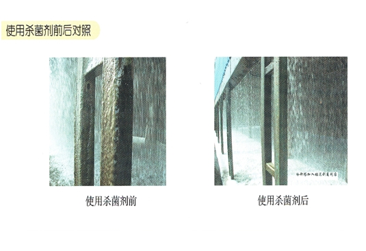 某單位循環冷卻水系統殺菌滅藻前和使用(復合型殺菌劑)后對比